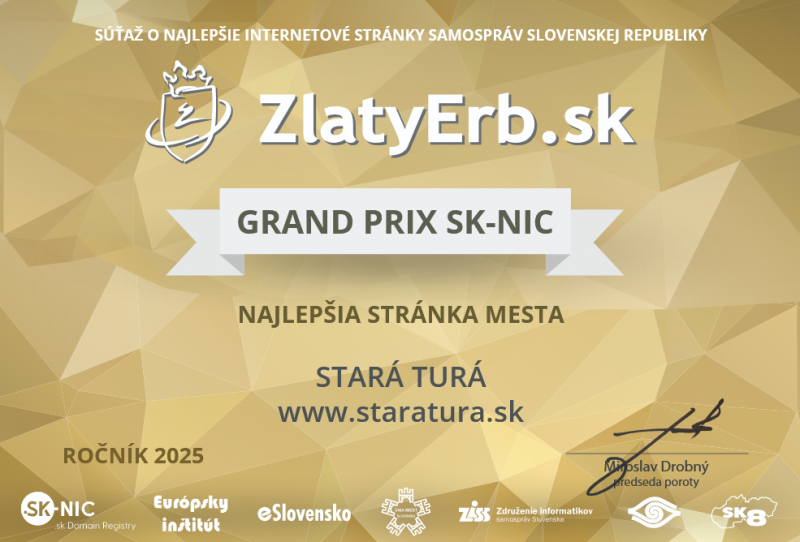 V súťaži ZlatyErb.sk sa webová stránka mesta Stará Turá opäť umiestnila na prvom mieste