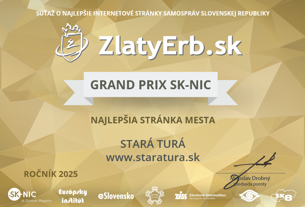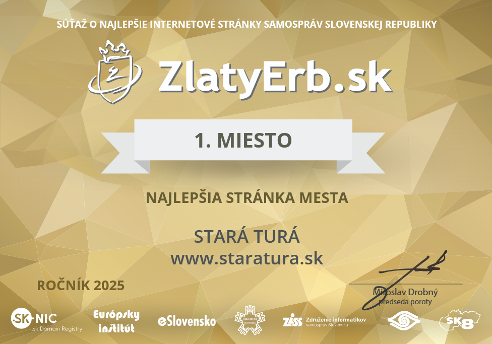 V súťaži ZlatyErb.sk sa webová stránka mesta Stará Turá opäť umiestnila na prvom mieste