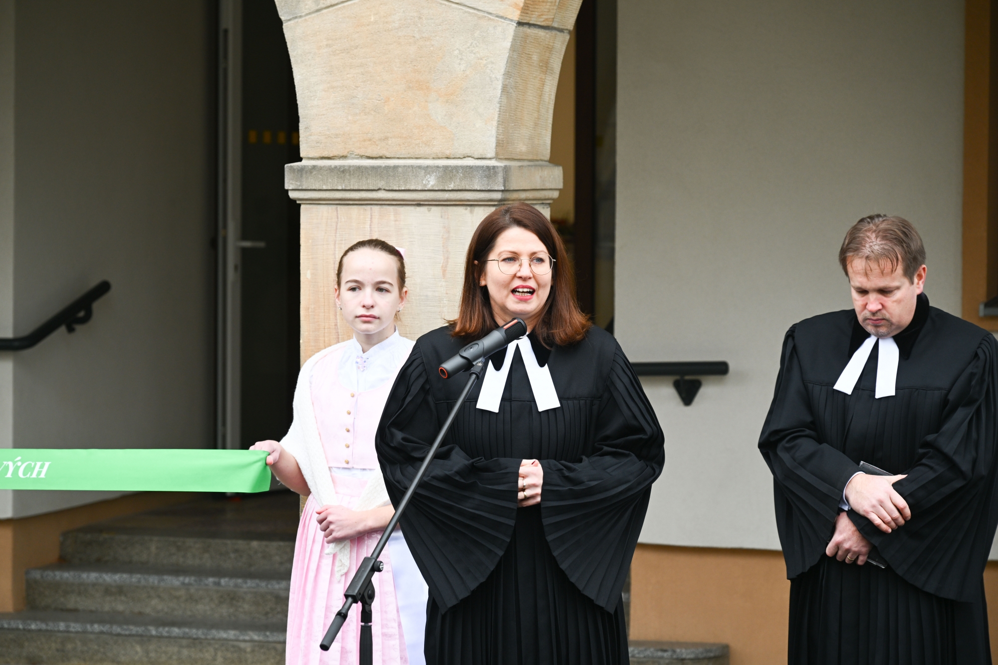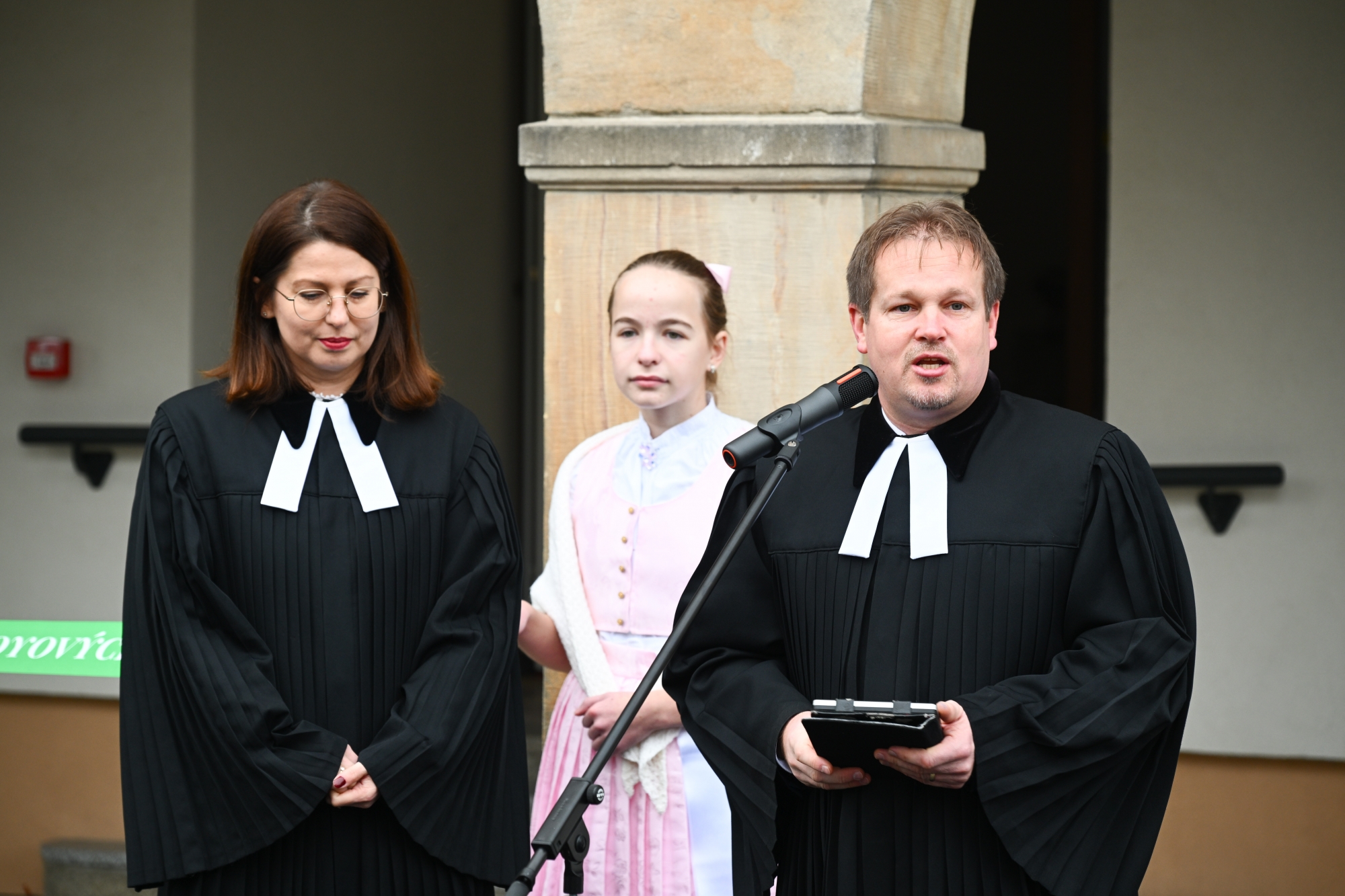 Po príhovore nasledovalo krásne a dojímavé požehnanie od zborového farára Mgr. Ľuboša Činčuráka a námestnej farárky Mgr. Anny Činčurákovej-Tipulovej z Evanjelickej cirkvi a. v. (ECAV), ktoré dodalo celému okamihu hlboký a symbolický rozmer.